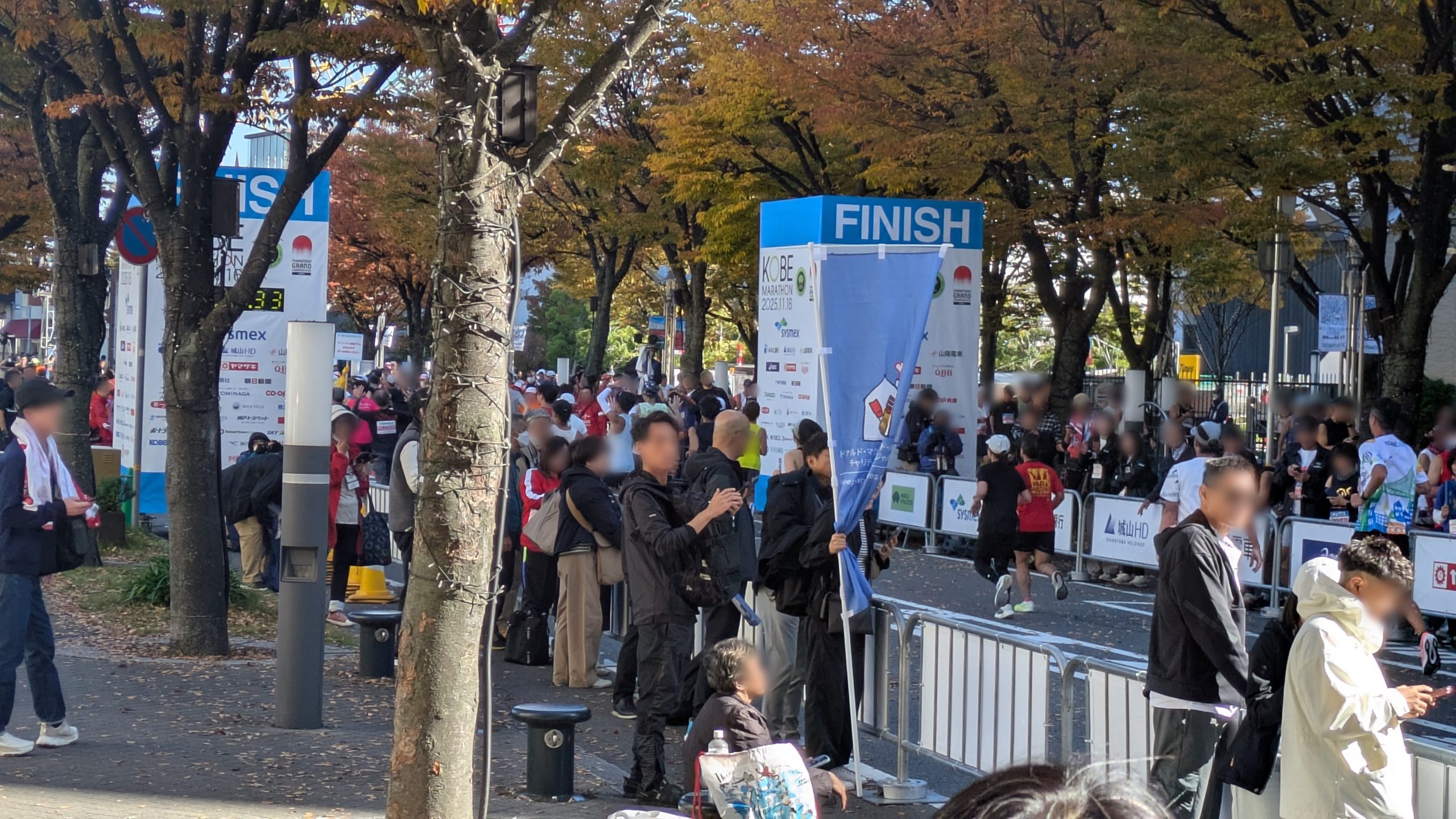 さらに、ハーバーランド周辺にはゴール地点 が設けられており、フィニッシュへ向けて懸命に走るランナーの姿が非常に印象的でした。迫力あるシーンを写真でも収めており、その空気感が伝わる一枚となっています。