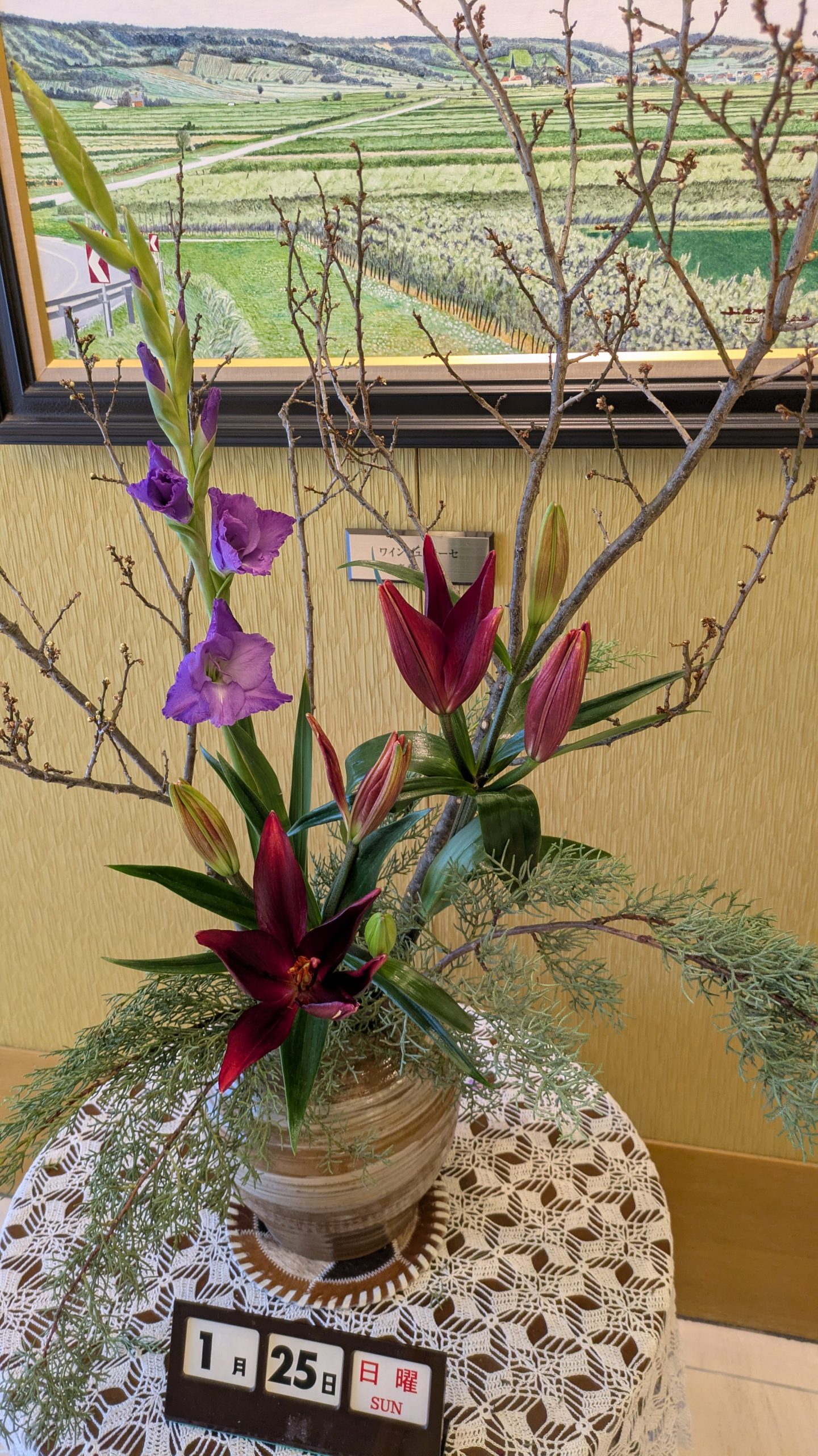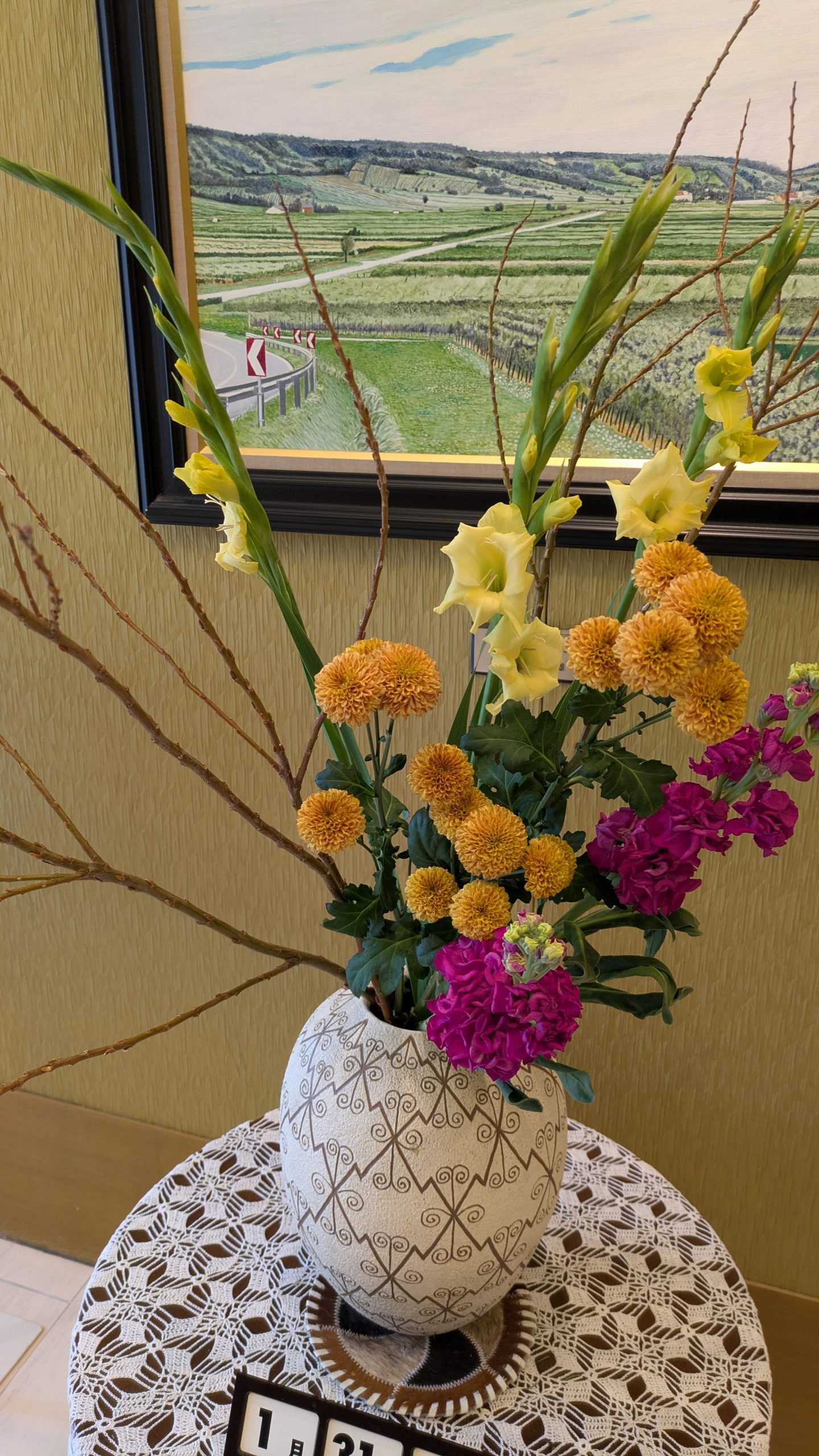 今回ご紹介するのは、2026年1月に飾られたロビーの生花アレンジメントです。