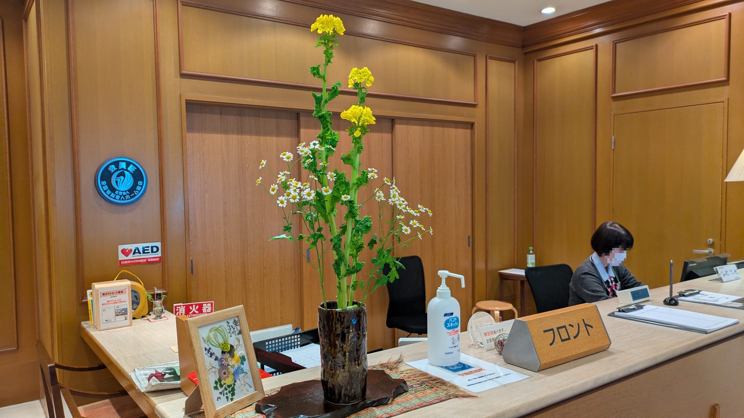 ロビーに飾られている生花は、生活相談員が